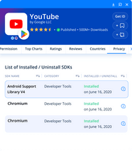 Browse iOS and Android SDKs. See which apps trust them and catch suspicious removal trends. Gain insight into app tech stacks.